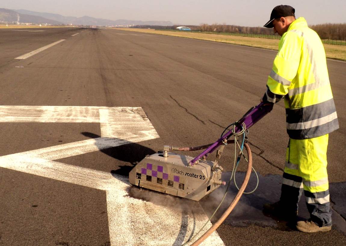 Odstranjevanje talne signalizacije in sledov gum na letališčih