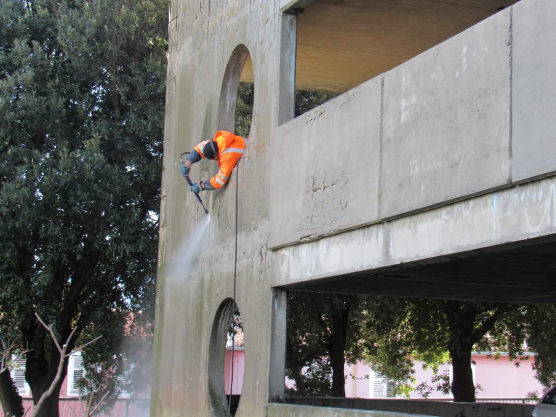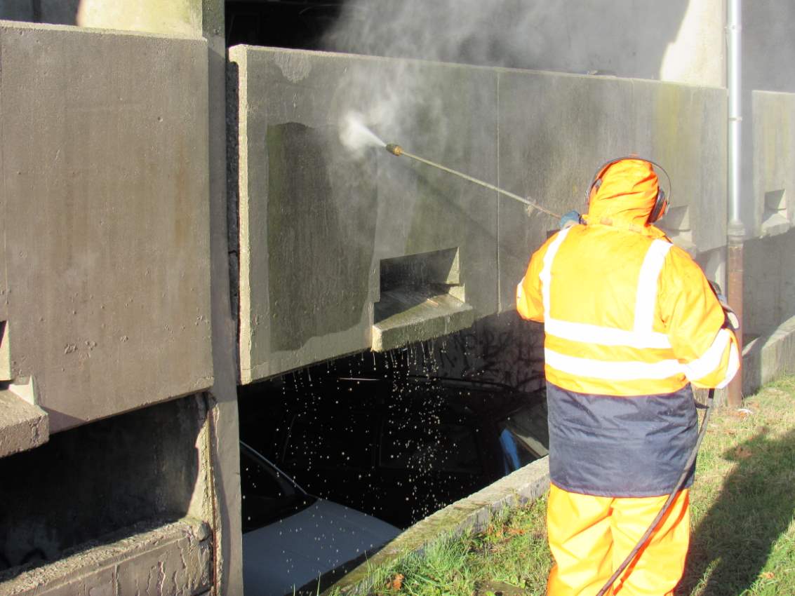 USPEŠNO IZVAJAMO RAZBIJANJE BETONOV Z VODNIMI POSTOPKI (HIDROSTATIČNO RAZBIJANJE BETONA) RAZLIČNIMI POSTOPKI IN RAZLIČNIH GLOBIN. Odbijanje poškodovanega betona, in na splošno betonov izvajalo z robotom ali z drugo opremo.