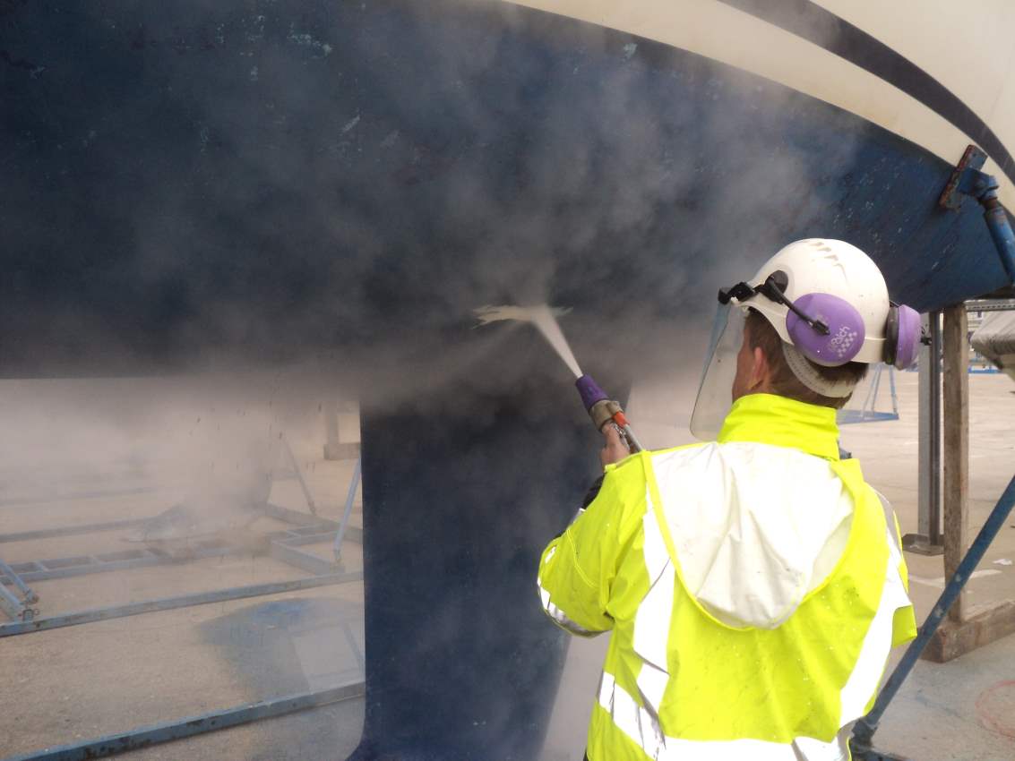 "Peskanje" ladje z vodo