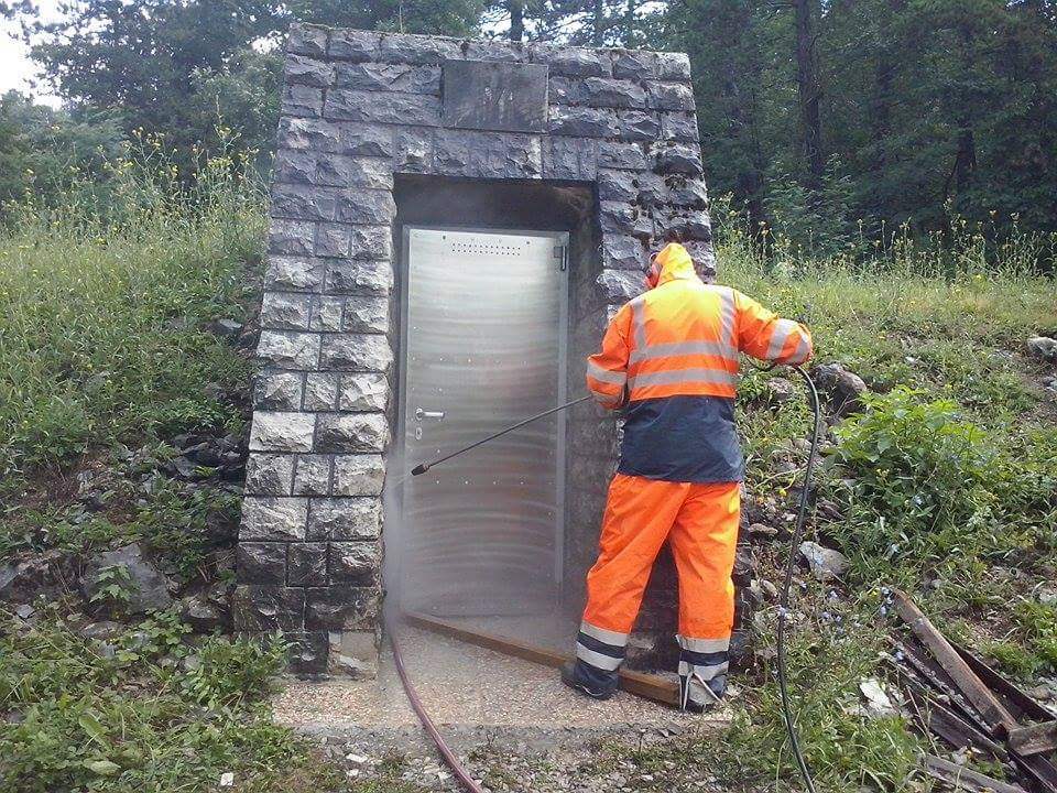 USPEŠNO IZVAJAMO RAZBIJANJE BETONOV Z VODNIMI POSTOPKI (HIDROSTATIČNO RAZBIJANJE BETONA) RAZLIČNIMI POSTOPKI IN RAZLIČNIH GLOBIN. Odbijanje poškodovanega betona, in na splošno betonov izvajalo z robotom ali z drugo opremo.